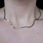 Avec sa chaîne serpentine souple en acier inoxydable, il reflète la lumière comme une seconde peau. Son style minimaliste, intemporel et mixte lui permet de se glisser dans toutes les tenues.